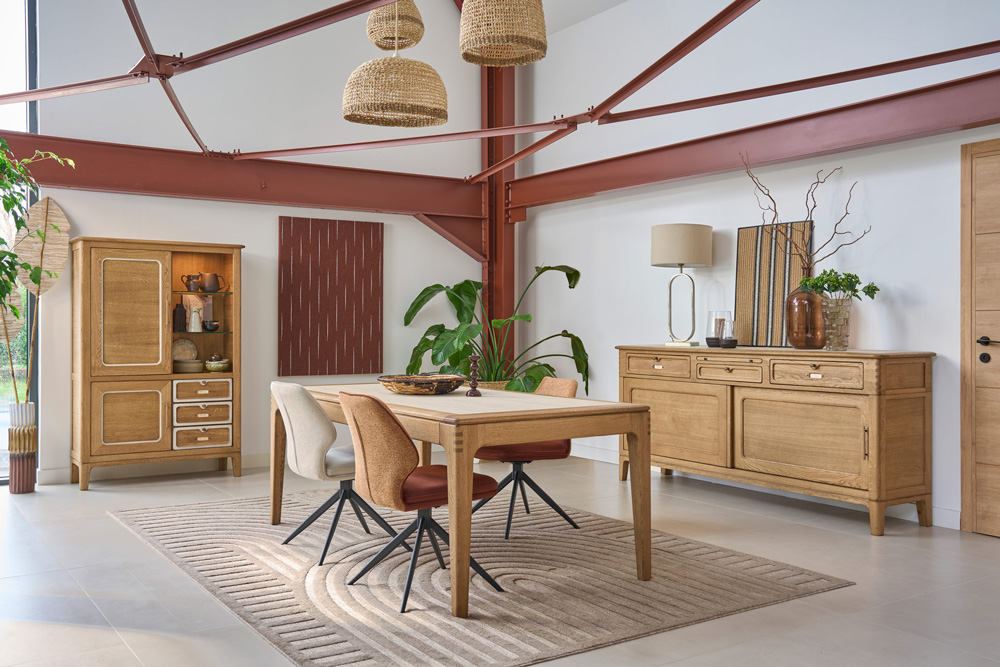 Ambiance séjour buffet, table, chaise, vitrine