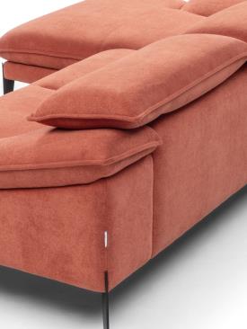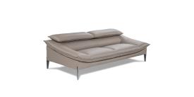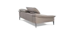 Calia Italia Réf. flan.premium 1262 - Design. centro studi interno Dimensions : l 182/202/222/242 x h 78 x p 108 cm Flan est un canapé au design contemporain, caractérisé par des lignes épurées, des proportions compactes et une élévation de 19 cm grâce à ses pieds en métal, qui soulignent sa légèreté et son élégance. Le coussinage « en savonnettes » assure une continuité visuelle entre l’accoudoir et l’assise, mise en valeur par une couture pincée. Cette solution permet de reposer la tête en position allongée. L’accoudoir incliné améliore le soutien tout en valorisant le profil latéral. L’assise est équipée de ressorts ensachés pour une durabilité et un confort optimaux. Les appui-têtes réglables permettent de passer d’un style compact à une assise plus enveloppante. Disponible en plusieurs dimensions, jusqu’à 240 cm, également en version chaise longue. Structure: sapin, panneaux multiplis, enrobage polyuréthane expansé Suspensions: sangles élastiques Rembourrage Assise: ressorts ensachés recouverts de polyuréthane expansé écologique, enveloppés d'un rabat 100 % polyester Rembourrage Dossier: polyuréthane expansé écologique recouvert d'un rabat 100 % polyester Rembourrage Accoudoir: polyuréthane expansé écologique recouvert d'un rabat 100 % polyester Parties déhoussables: non déhoussable Coutures: les revêtements sont réalisés avec surpiqûres ton sur ton ou, sur demande, avec un fil contrasté selon les variantes de couleur disponibles. Le revêtement en cuir comporte des découpes différentes de celles du revêtement en tissu. Mécanismes: modèle équipé d'un appuie-tête relevable manuellement. La hauteur du modèle avec appuie-tête relevé est de 99 cm. Piétement standard: PM2302 h 19 cm, par côté avec accoudoir. PM2326 h 19 cm, par côté sans accoudoir, partie avant C.L. et version pouf. Les deux en métal, finition standard noir mat ou, sur demande, bronze antique et graubraun. Tous les pieds sont disponibles avec des finitions spéciales en métal : poli, satiné, titane, cuivre et champagne. Les finitions spéciales sont disponibles avec un supplément et sous réserve de faisabilité en phase de production. Certaines versions sont également dotées de pieds cachés à fonction structurelle.