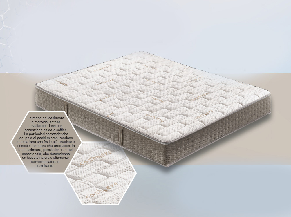 Il Benessere Le cachemire est doux, soyeux et velouté au toucher, offrant une sensation de chaleur et de moelleux. La finesse exceptionnelle de son poil en fait l'une des laines les plus précieuses et les plus chères. Les chèvres qui produisent le cachemire possèdent un poil d'une qualité exceptionnelle, donnant naissance à une fibre naturelle hautement thermorégulatrice et respirante. Housse en mélange cachemire et viscose. Matière matelassée continue. Fermeture éclair sur les quatre côtés. Garnissage : 300 g housse matelas