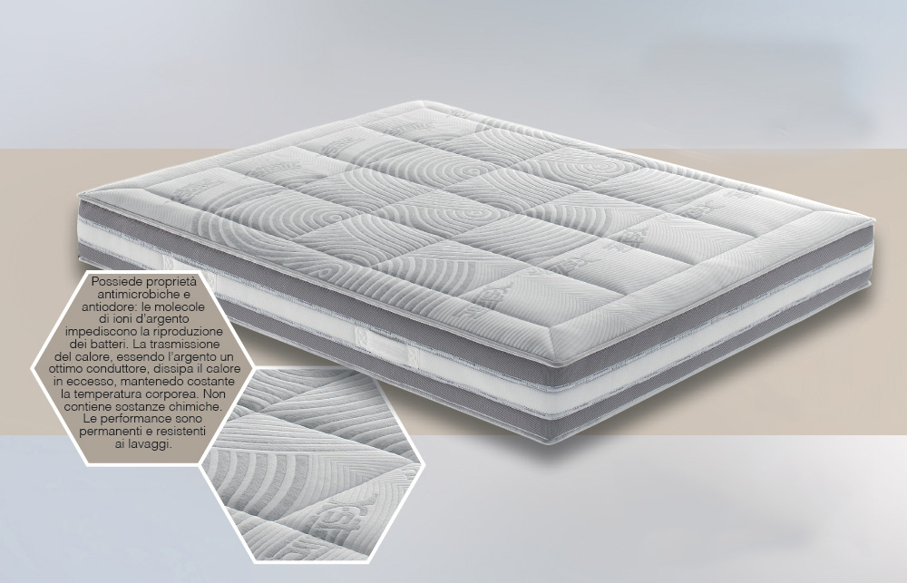 Il Benessere Ce produit possède des propriétés antimicrobiennes et anti-odeurs : les ions d’argent empêchent la prolifération des bactéries. L’argent est un excellent conducteur de chaleur, dissipant l’excès de chaleur et maintenant une température corporelle constante. Il ne contient aucun produit chimique. Son efficacité est permanente et il résiste au lavage. Matelassage placé Fermeture éclair sur les quatre côtés Garnissage : 500 g PL Le fond de toutes les housses matelassées est entièrement doublé d’un tissu 3D respirant housse matelas