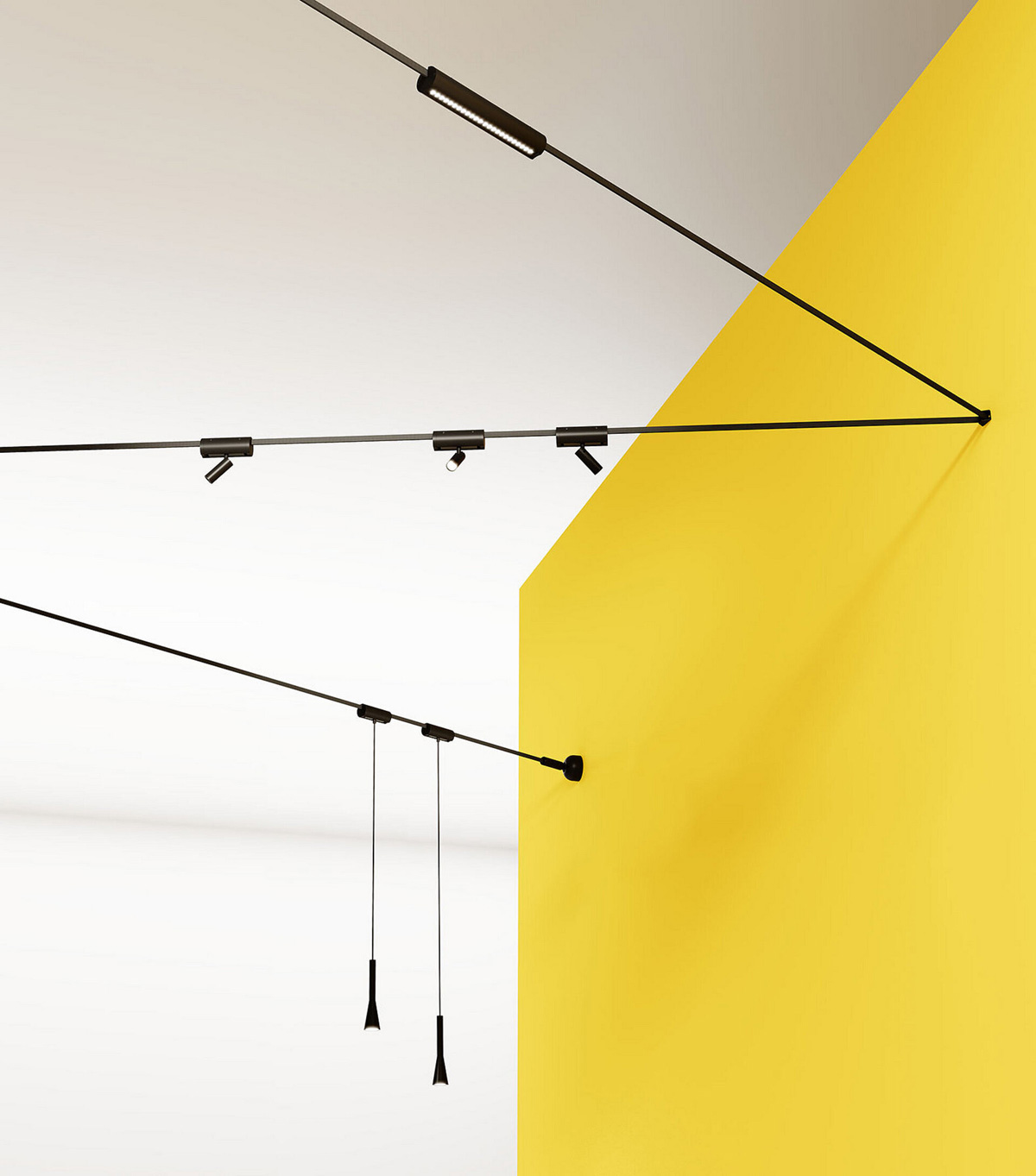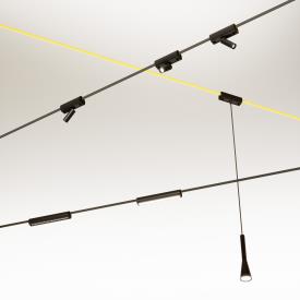 Martinelli Luce Design. Emiliana Martinelli Scoiattolo, le système qui traverse l'espace Scoiattolo est un système d'éclairage dynamique qui parcourt librement l'espace, comme un écureuil joueur qui saute de branche en branche. Scoiattolo a été conçu pour dépasser les limites traditionnelles de la lumière : il n'y a plus de points fixes, mais un tracé flexible qui relie les murs et les plafonds. La lumière devient une véritable ligne tendue, qui s'intègre aussi bien dans les projets domestiques qu'architecturaux. L'élément central du système est le câble à 4 pôles qui combine fonction structurelle et alimentation électrique en une seule solution. Une infrastructure légère mais performante, qui transporte le courant là où il est nécessaire, même en traversant la pièce d'un mur à l'autre. Les luminaires, fixes ou orientables, s'accrochent directement au câble ou y sont suspendus, et peuvent être positionnés facilement et librement pour répondre à différents besoins : éclairage ponctuel, accentuation, éclairage fonctionnel ou scénographique. Grâce au contrôle DALI avec unité de commande dédiée, chaque source lumineuse est gérée de manière indépendante. L'intensité lumineuse s'adapte ainsi à l'évolution des besoins, offrant un niveau élevé de personnalisation et une gestion avancée des scénarios lumineux. Scoiattolo est un système ouvert et modulable, destiné aux environnements résidentiels et aux espaces professionnels où la lumière devient une partie active du projet.