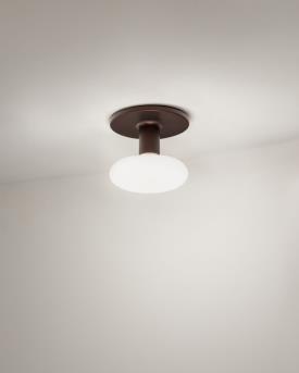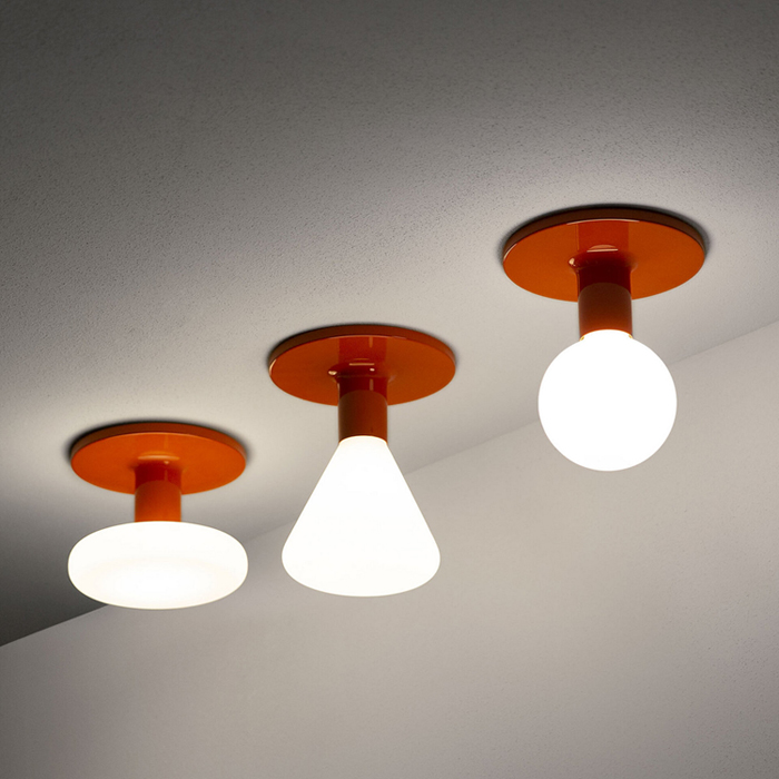 Martinelli Luce Design. Emiliana Martinelli, Réf. 2906/G Dimensions : Ø 26 x h 9 cm Plafonnier à lumière directe diffuse composé d'un support en aluminium peint et d'une ampoule LED à choisir à volonté parmi nos trois formes proposées: - sphère (cod. 583Y) - cône (cod. 584Y) - disque (cod. 585Y) Couleurs et matériaux Couleur de la structure : Blanc, laque brillante, RAL 9004 Matériau de la structure : Aluminium Usage : Intérieur Puissance : 14 W Tension : 230 V lampe plafonnier