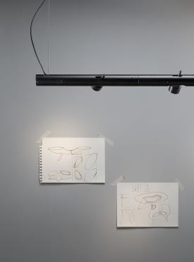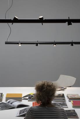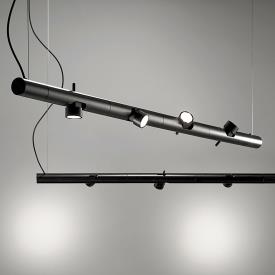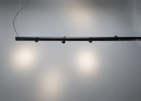 Martinelli Luce Design. Emiliana Martinelli, Réf. 2090/DIM Dimensions : Ø 4,5 x l 133 x p 7,5 cm Suspension modulaire, fabriquée avec des tubes en aluminium peint couleur noir. 4 spots orientables et source de lumière à LED. Drivers électroniques à l'intérieur du boîtier à fixer au plafond. Le joint de raccord est également disponible pour l'assemblage de plusieurs modules (code 30869). Verres interchangeables 10° - 40° (sur demande). Utilisation: intérieur Typologie: suspension Couleur Structure: noir, opaque, RAL 9005 Matériau de la structure: Aluminium Matériau du diffuseur: Polycarbonate lampe suspension