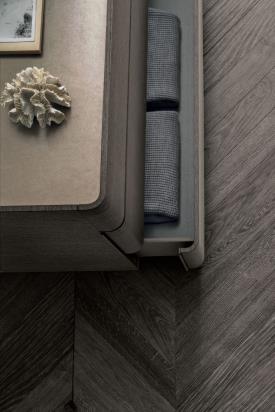 Tomasella Dimensions : Table de chevet : l 61,8 x h 43 x p 42,4 cm - Commode : l 61,8/137,1 x h 72,4/116,2 x p 42,4/57,4 cm Ce design tout en courbes et en arrondis évoque le style des années 60 et apporte une touche vintage à ces meubles. Les façades et les plateaux sont disponibles en différentes finitions pour créer des combinaisons de couleurs et de textures personnalisées. Commode en chêne moka, réf. Plateau en grès cérame Urban Marble Élégance. Table de chevet en chêne sable, réf. Plateau Premium Calacatta Oro. Commodes hautes en chêne moka, réf. Plateau Premium Emperador. meuble de rangement